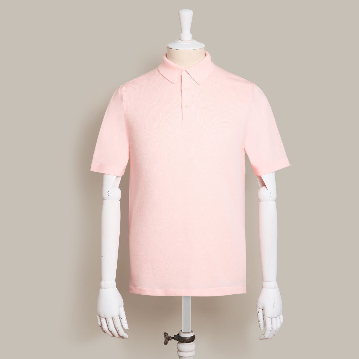 Short Sleeve Knitted Polo Shirt In Light Pink