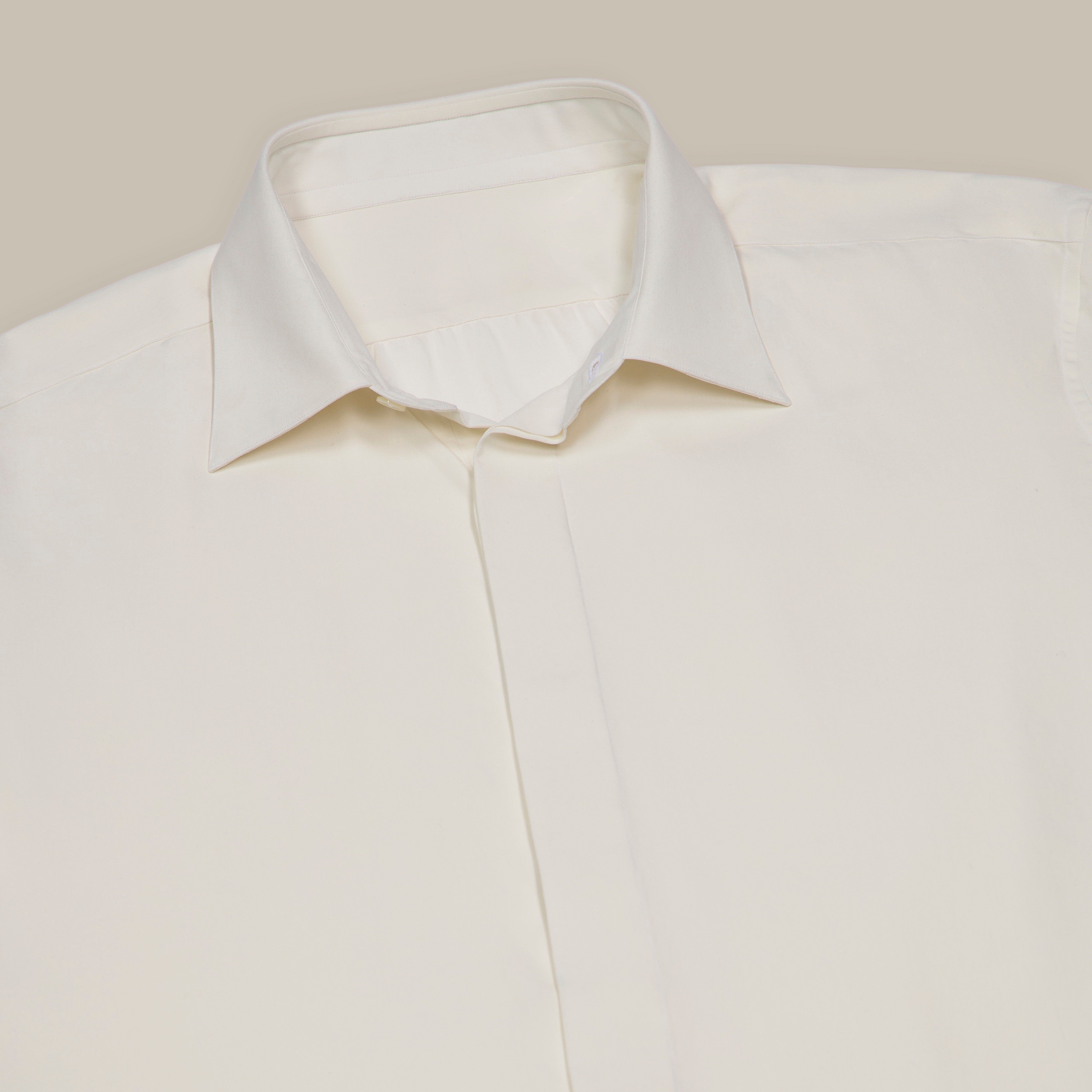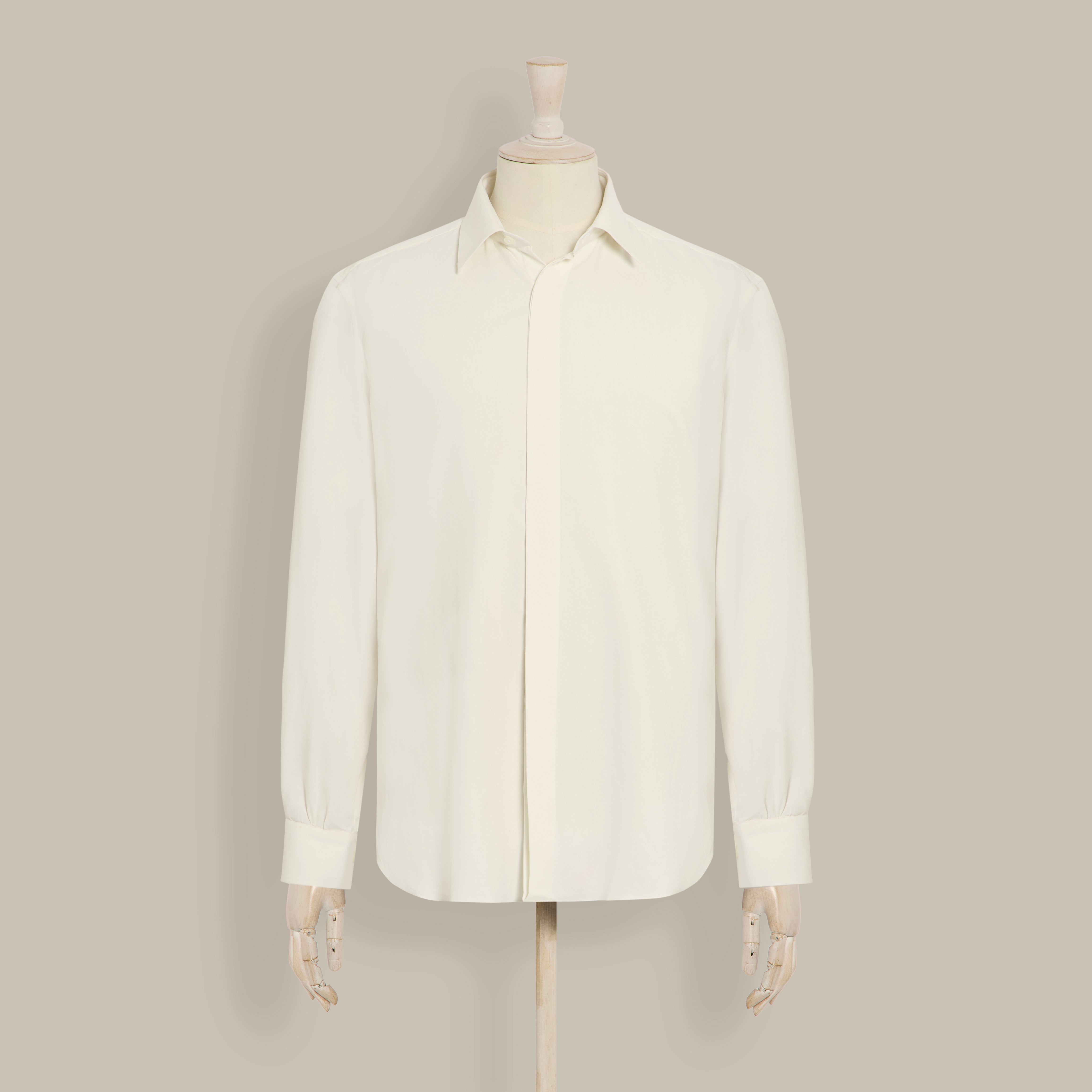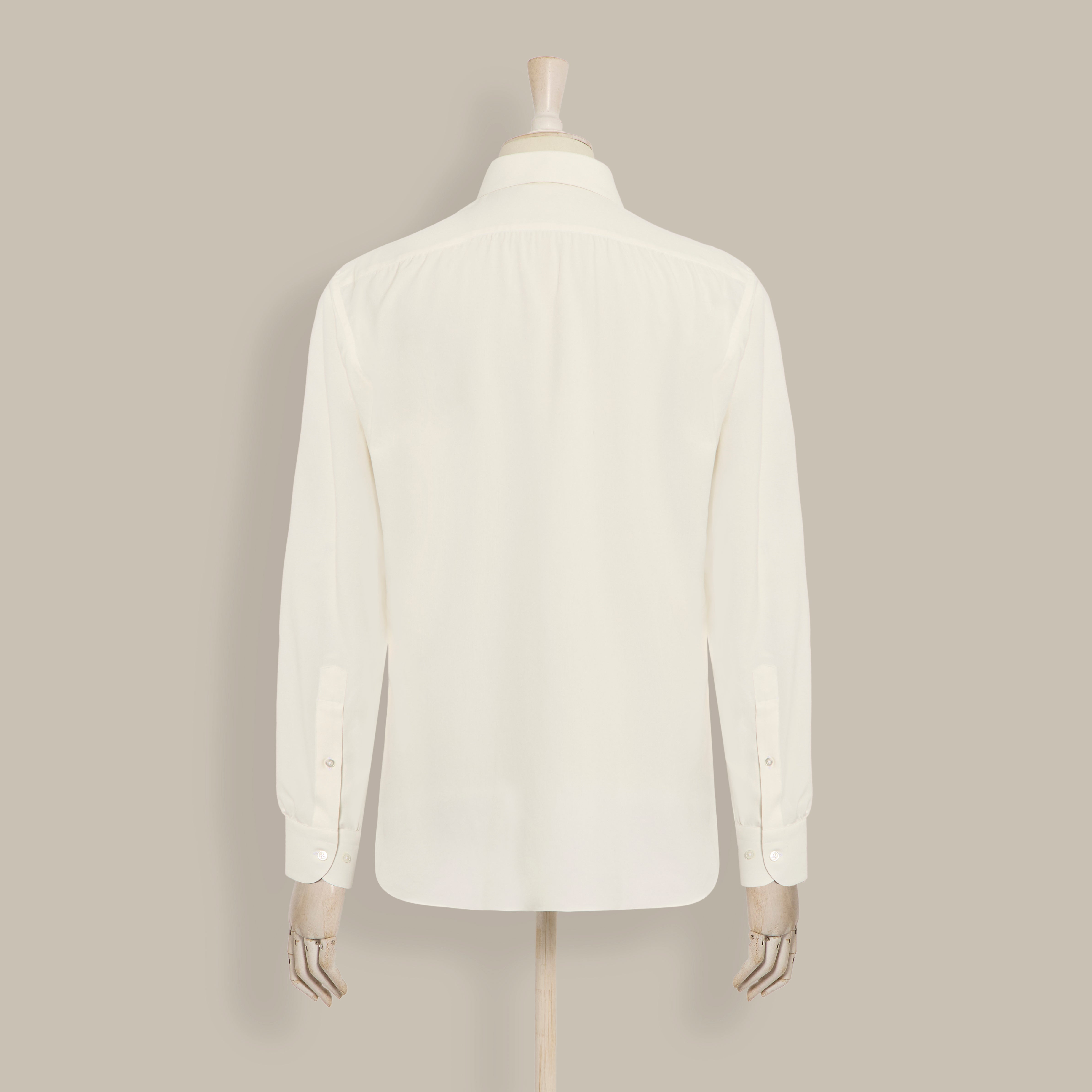 Silk Collared Shirt With Fly Front in Light Cream