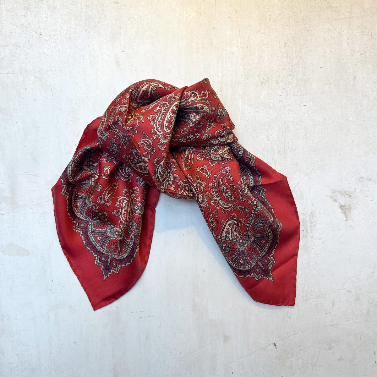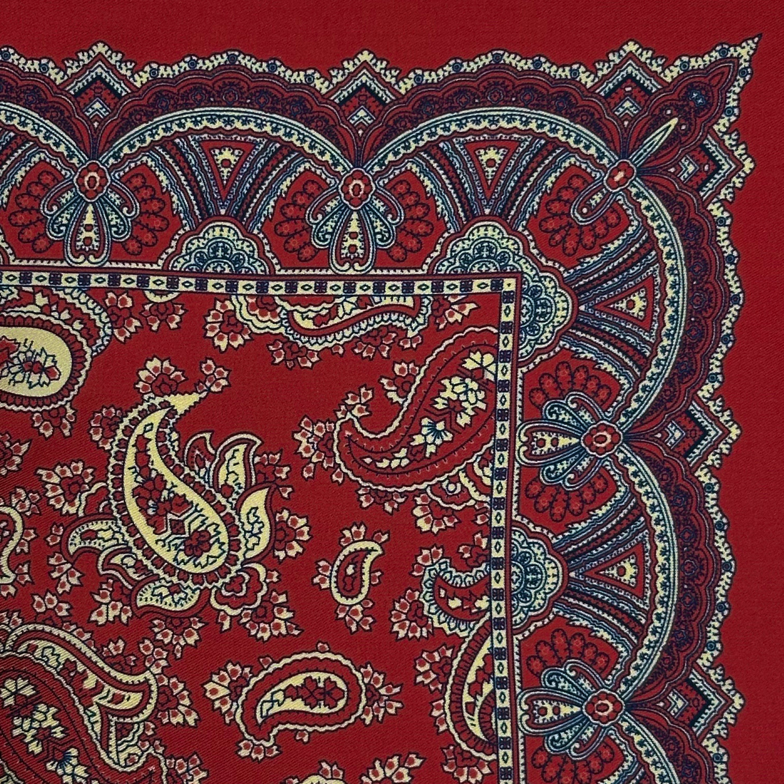 This jolly paisley neckerchief in red and navy is the perfect accompaniment to your outfit all year round. Screen printed on silk it can be worn in a variety of ways.