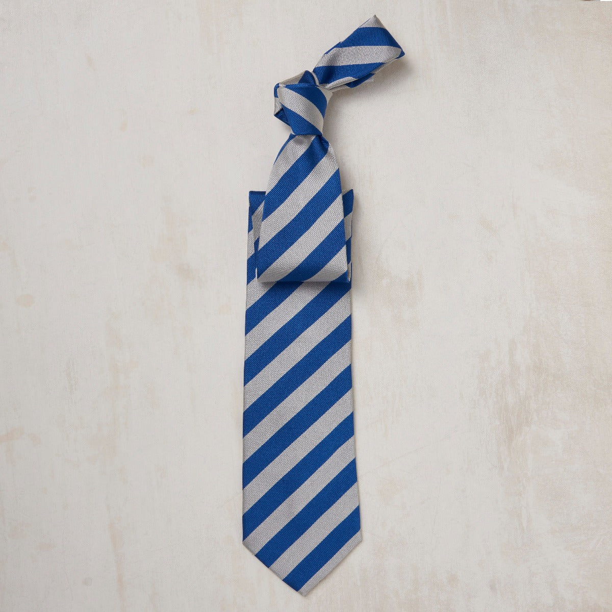For a classic addition to your workwear accessories wardrobe, this striped silk woven tie will perform alongside a variety of patterned or plain pocket squares and looks great against a white or pale blue shirt.
