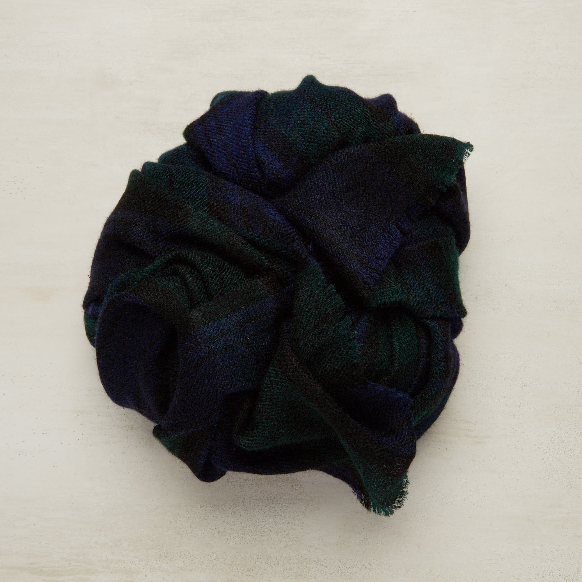 Tartan Check Cashmere Scarf In Dark Green And Navy