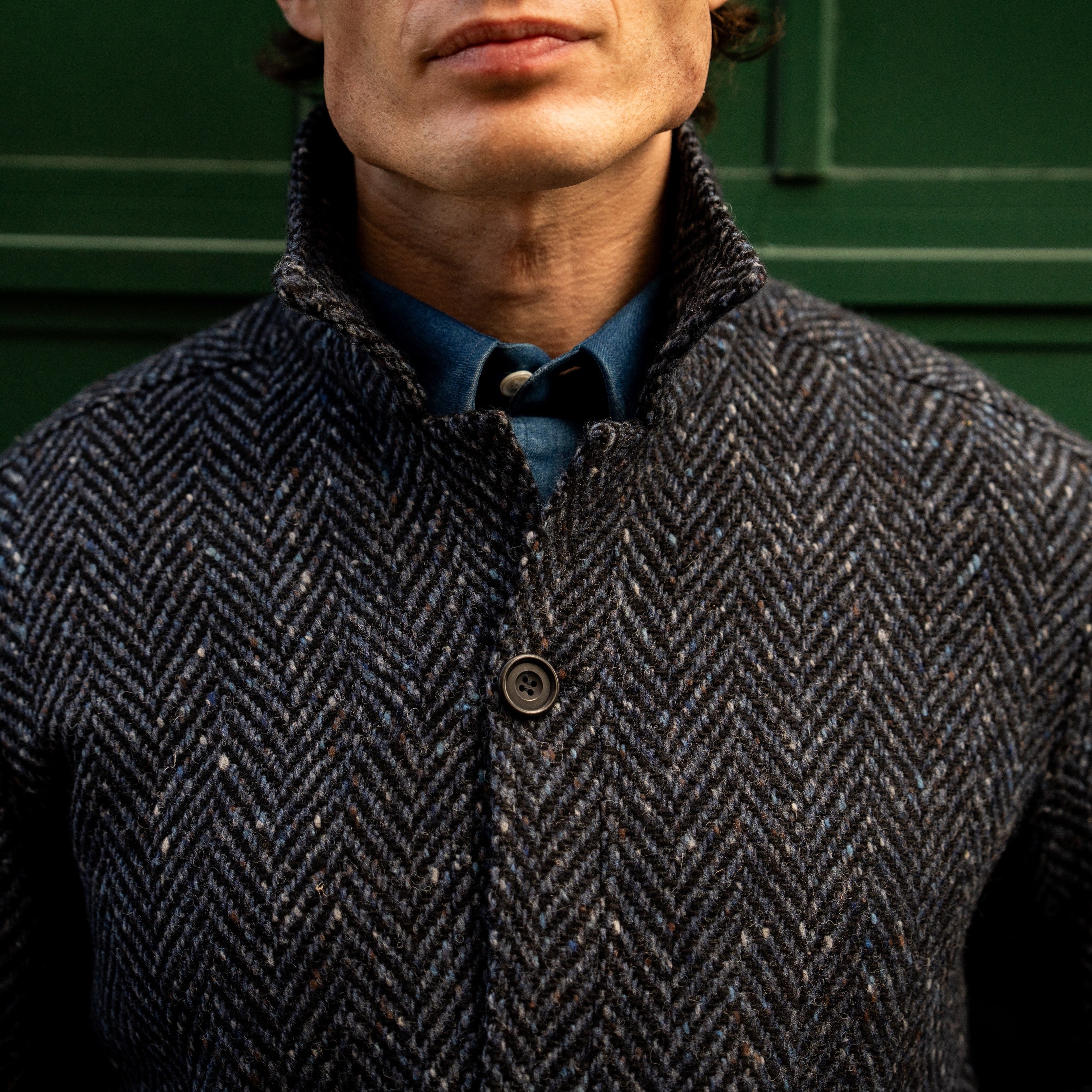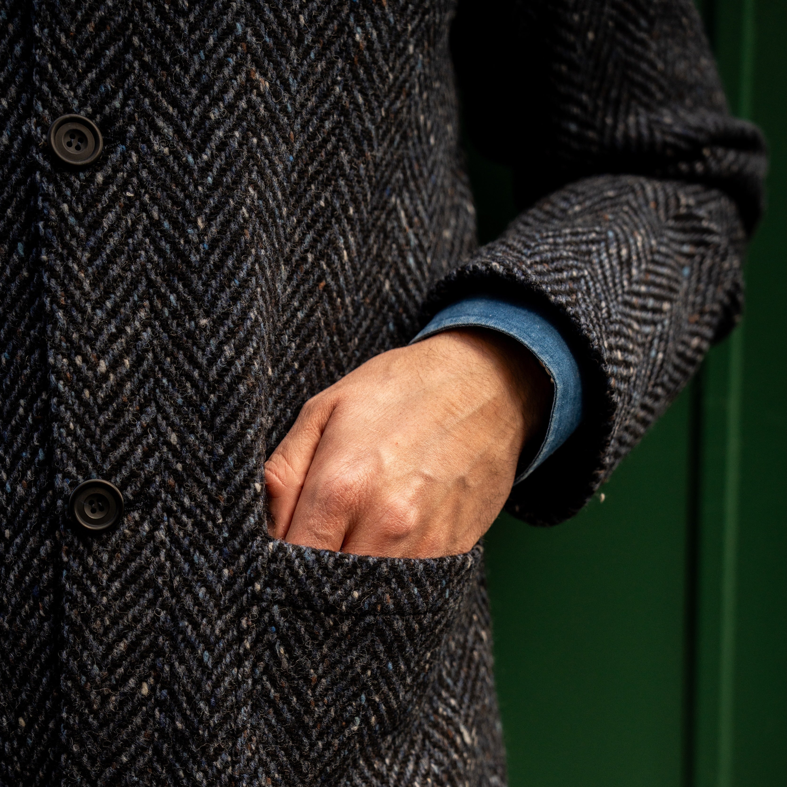 Evolving from our ever popular jacket number two is this slightly longer version, cut for a more generous and easy fit. Handwoven in wool, this piece can be layered over a chunky sweater or worn underneath an overcoat during the colder months. Featuring a bold herringbone design , two patch pockets and one internal zipped pocket, the practicality of this versatile jacket will have you reaching for it time and time again.