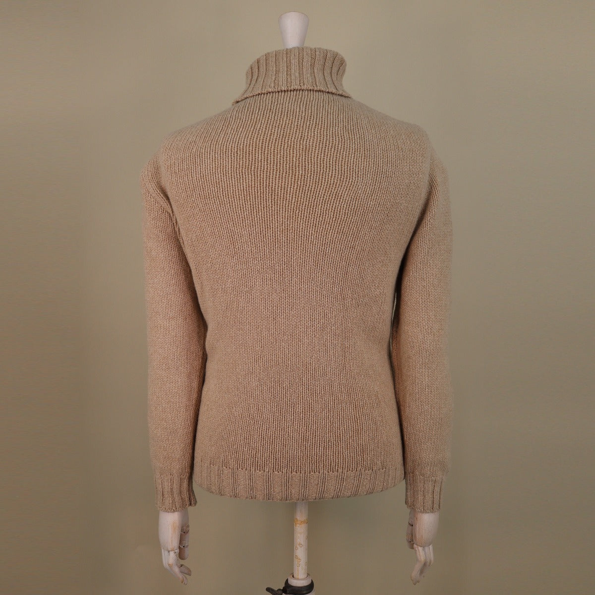 This cosy merino wool sweater is made in Scotland using a modernised archive pattern. The chunky roll neck protects from the cool chill of winter, perfect under an overcoat in lieu of a scarf.