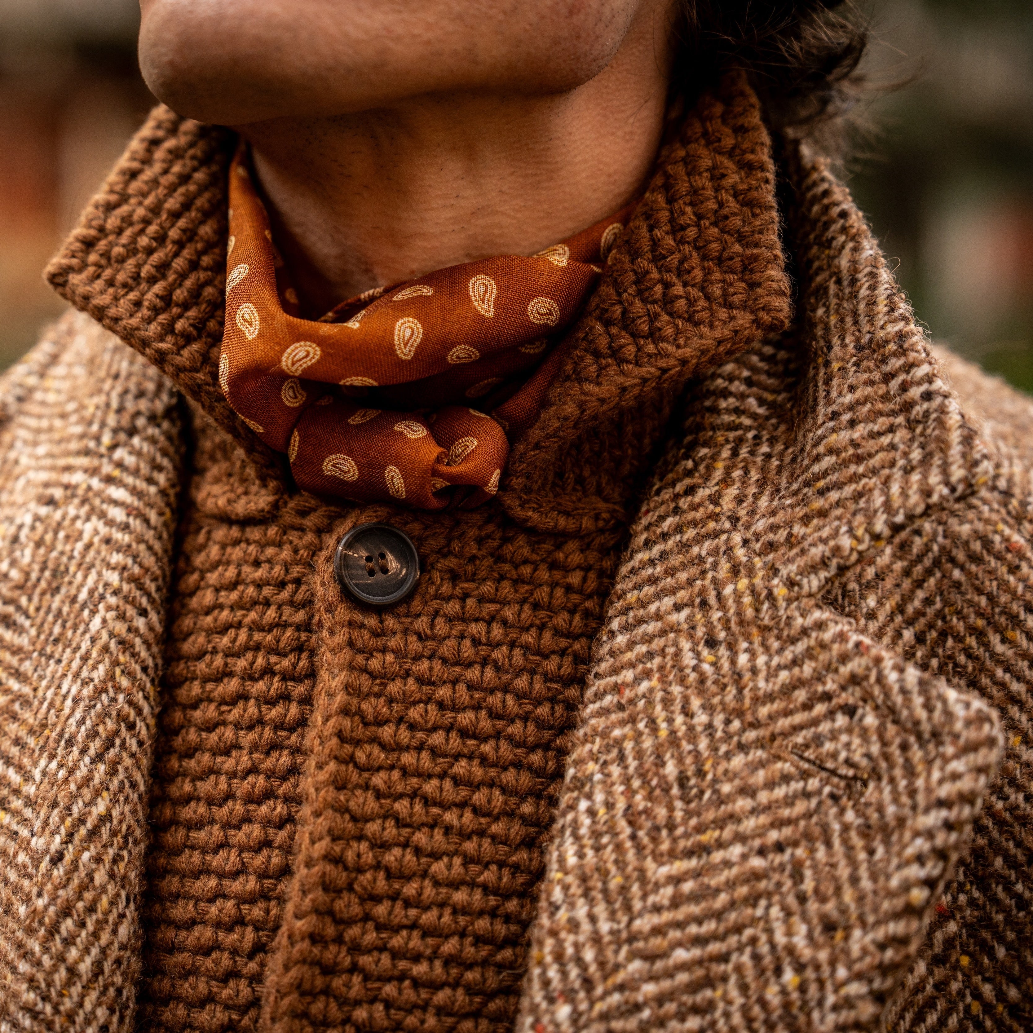 This soft paisley scarf is made from a combination of wool and silk and has fringed edges. It is made in Italy and comes in a range of colours