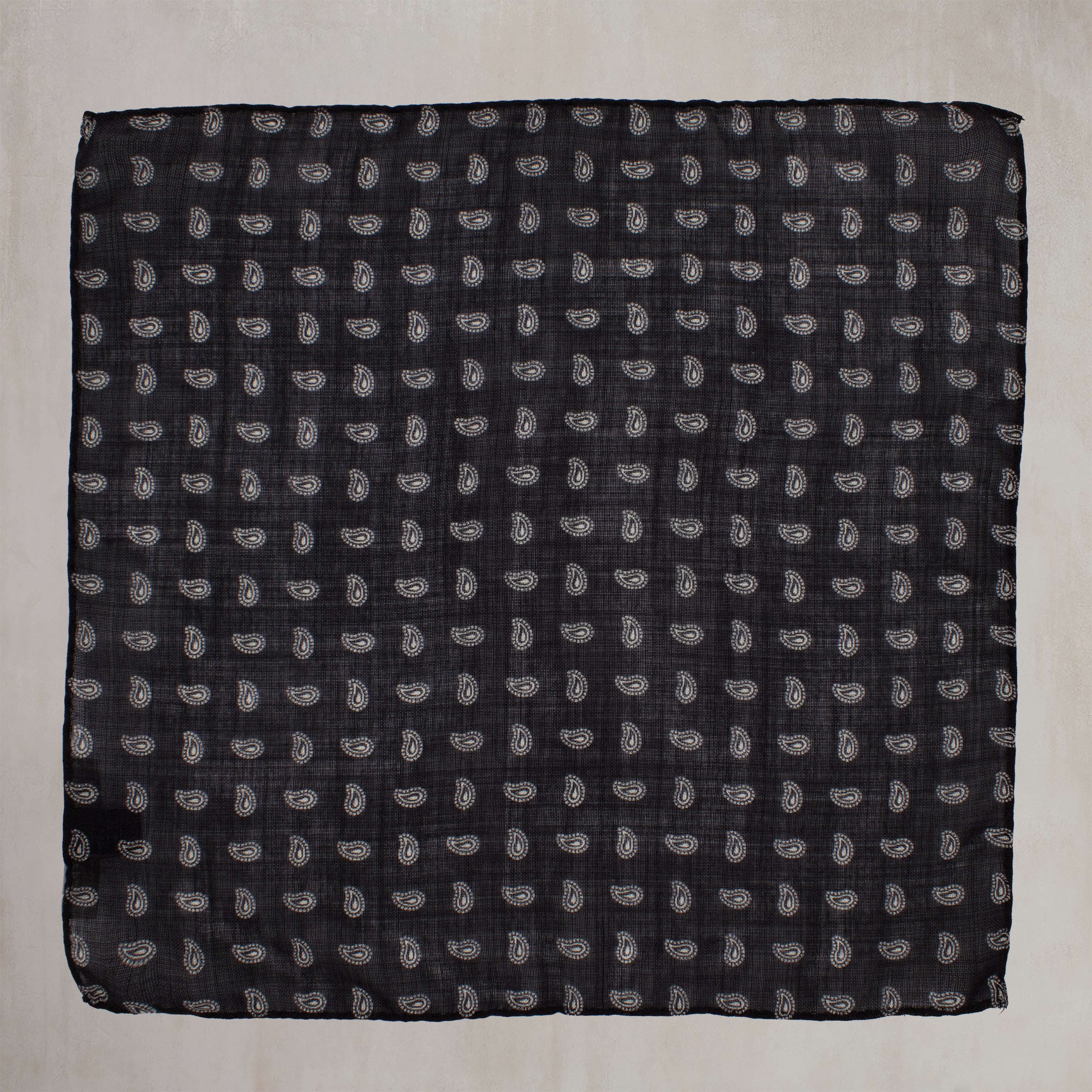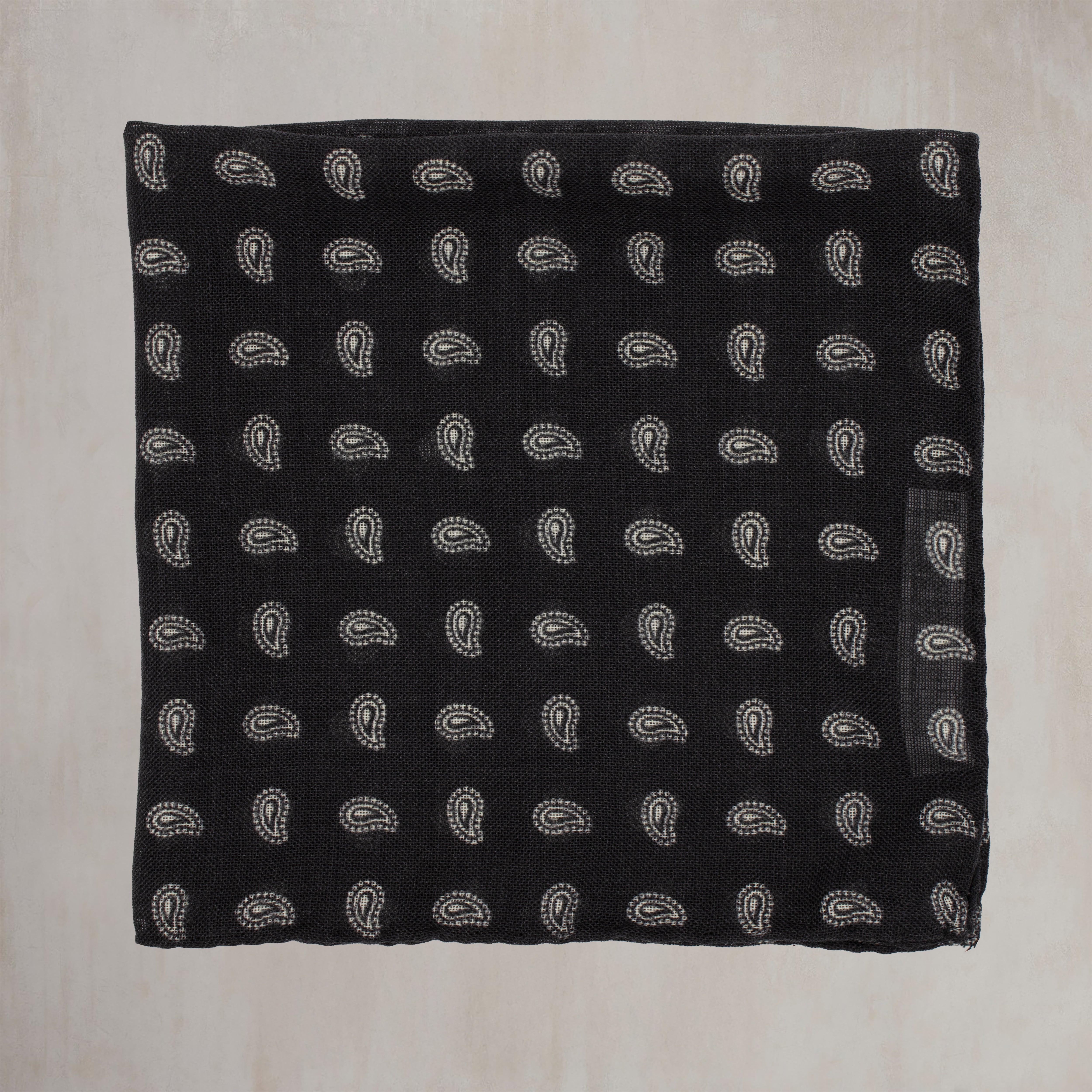 Wool And Silk Pocket Square with Paisley in Black