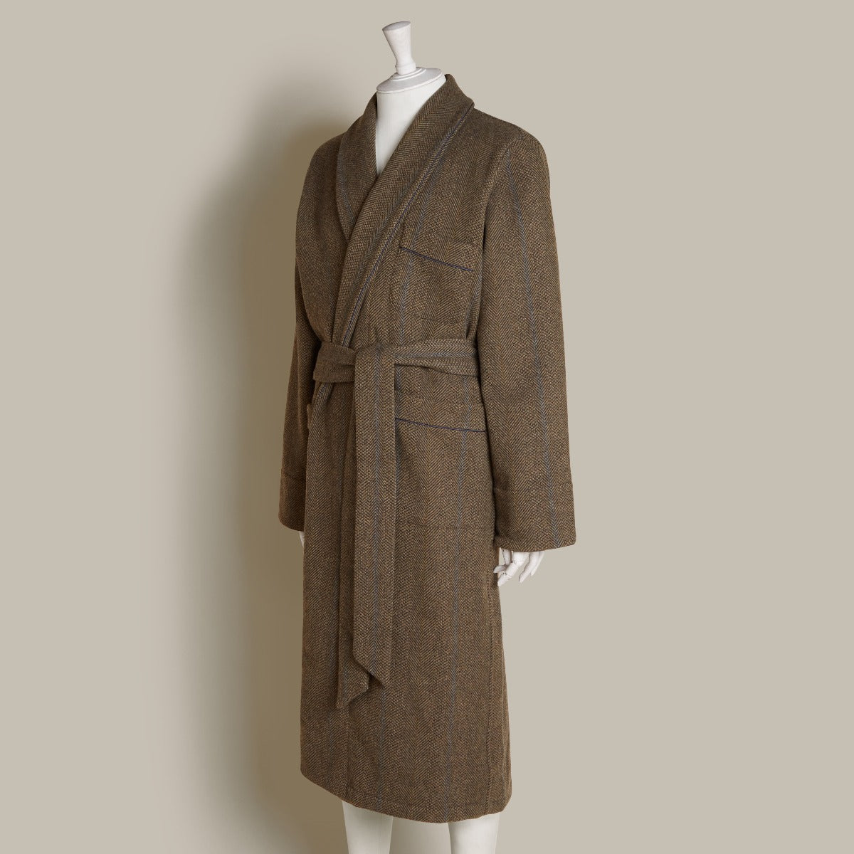 The item your nightwear wardrobe didn't know it was missing: Introducing our tweed herringbone dressing gown. Piped in navy, with a soft blue overcheck and featuring a shawl collar and tonal lining, this fabulous robe will ensure you never look unpresentable at the breakfast table or opening the door to the postman.