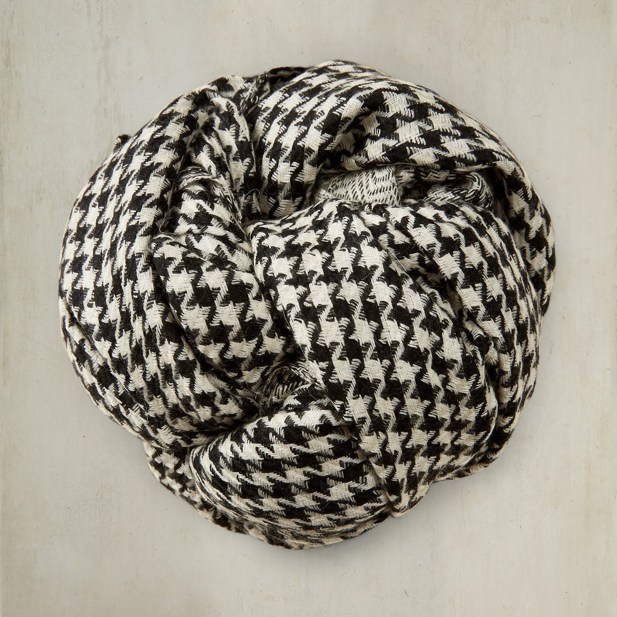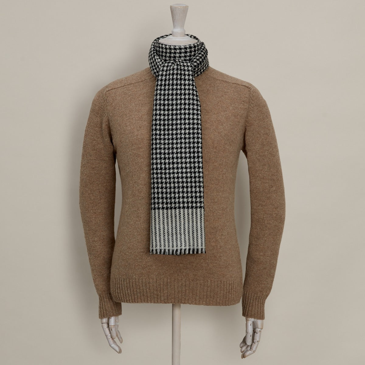 This houndstooth cashmere shawl is made by a small family run business in India. It has been hand woven and hand dyed using traditional techniques and features a fringed edge. Due to its large size , it has a wonderful drape and can be arranged in the chicest of ways to compliment your favourite Winter looks.